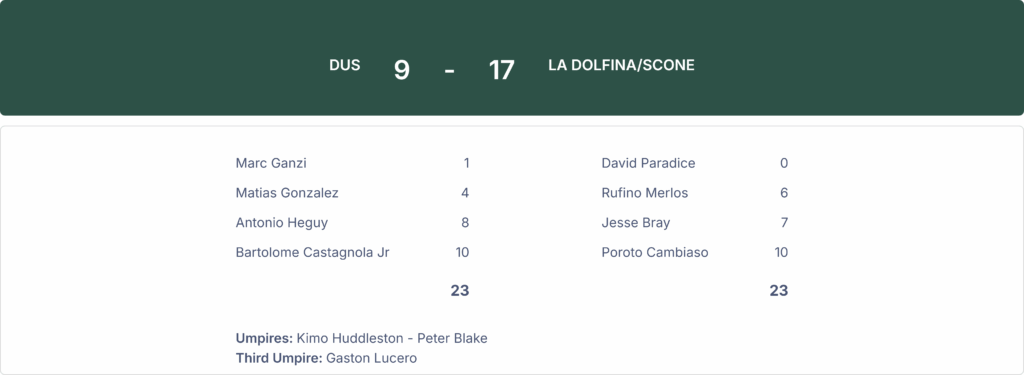 La Dolfina/Scone won against DUS by a score of 17-9 in the U.S. Open Polo Championship at the National Polo Center on Monday.