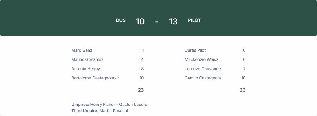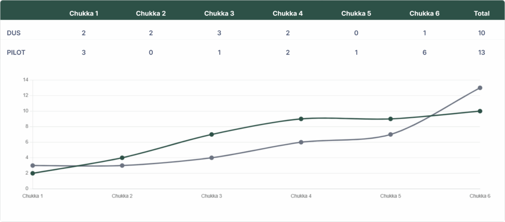 Pilot won against DUS by a score of 13-10 in the U.S. Open Polo Championship at the National Polo Center on Sunday.