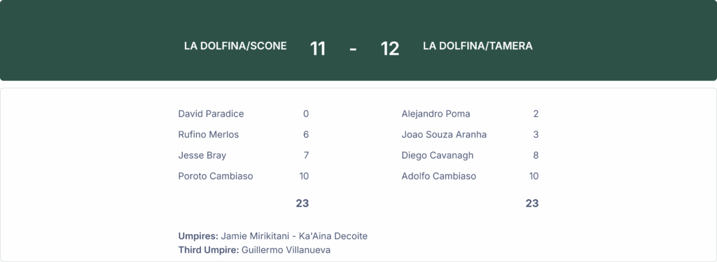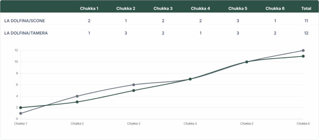 La Dolfina/Tamera won against La Dolfina/Scone by a score of 12-11 in the U.S. Open Polo Championship at the National Polo Center on Sunday.