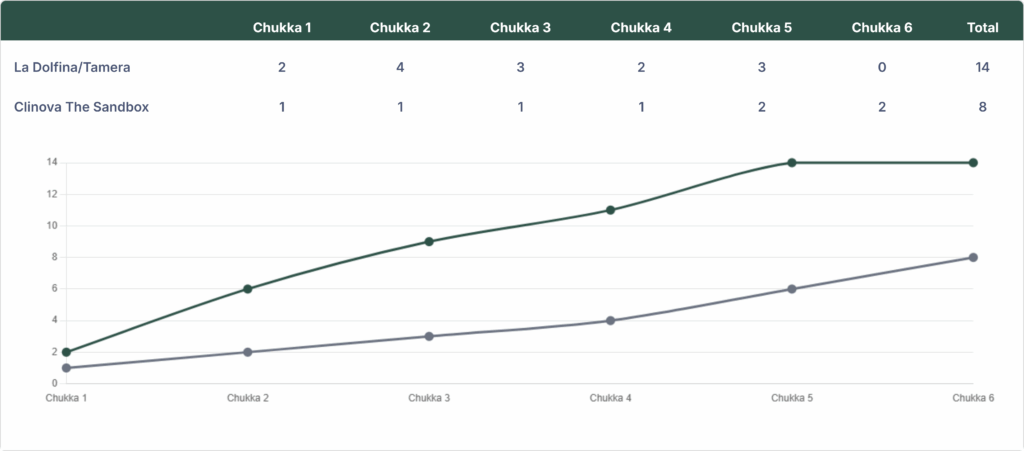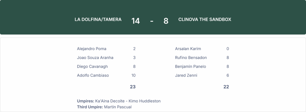 La Dolfina/Tamera won against Clinova The Sandbox by a score of 14-8 in the U.S. Open Polo Championship at the National Polo Center on Thursday.