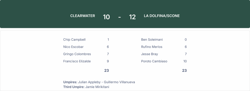 La Dolfina/Scone won against Clearwater by a score of 12-10 in the U.S. Open Polo Championship at the National Polo Center on Thursday.