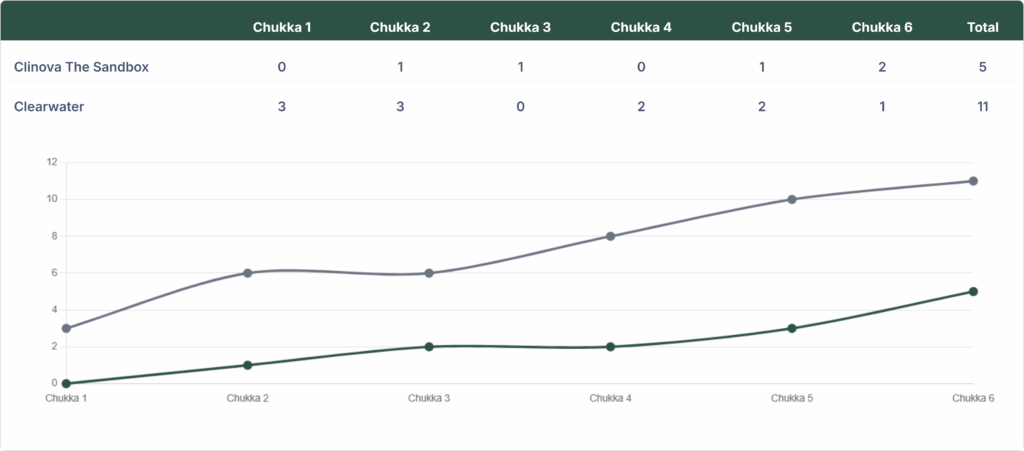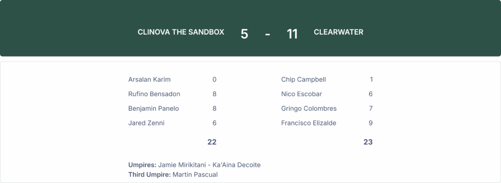Clearwater won against Clinova The Sandbox by a score of 11-5 in the U.S. Open Polo Championship at the National Polo Center on Sunday.