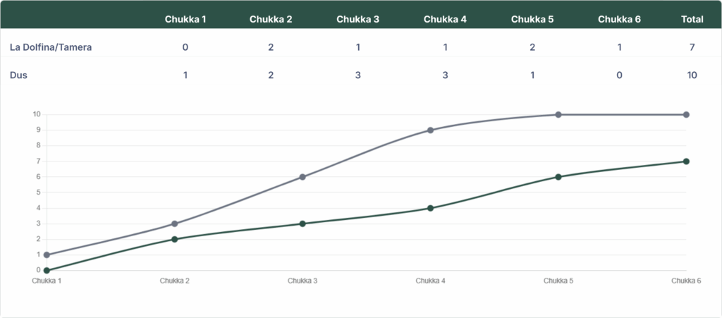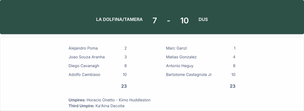 DUS won against La Dolfina/Tamera by a score of 10-7 in the U.S. Open Polo Championship at the National Polo Center on Sunday.
