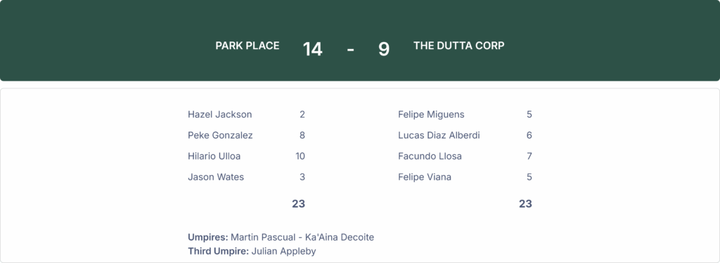 Park Place won against The Dutta Corp by a score of 14-9 in the U.S. Open Polo Championship at the National Polo Center on Friday.