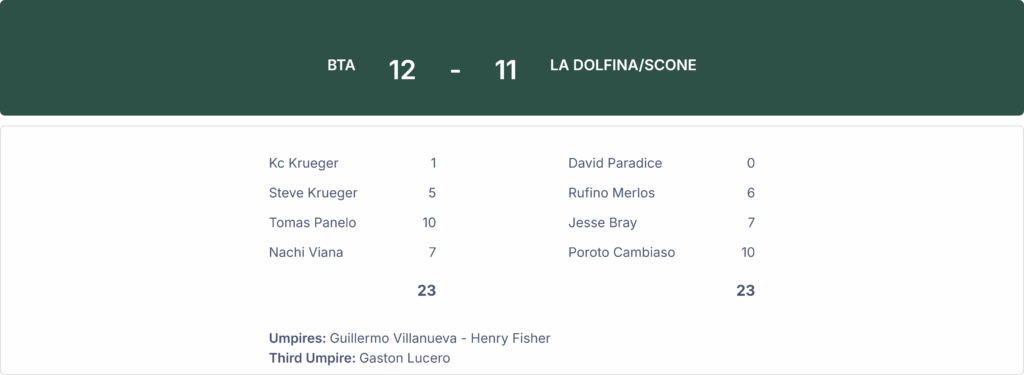 BTA won against La Dolfina/Scone by a score of 12-11 in the U.S. Open Polo Championship at the National Polo Center on Friday.