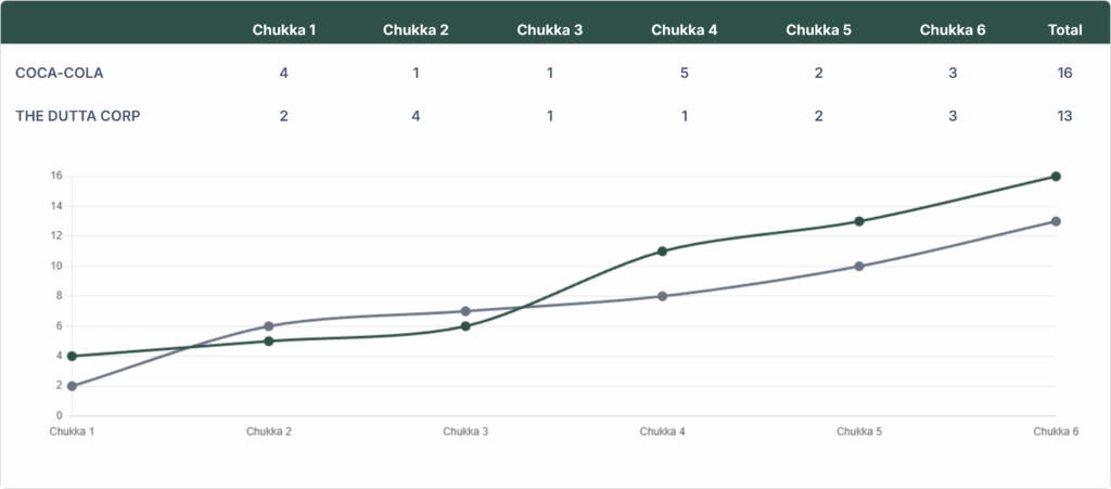 Coca-Cola won against The Dutta Corp by a score of 16-13 in the U.S. Open Polo Championship at the National Polo Center on Wednesday.