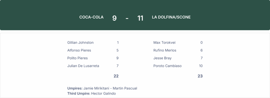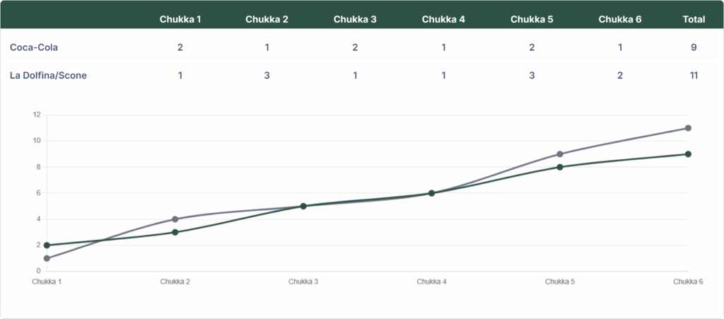 La Dolfina/Scone won against Coca-Cola by a score of 11-9 in the USPA Gold Cup at the National Polo Center on Wednesday.