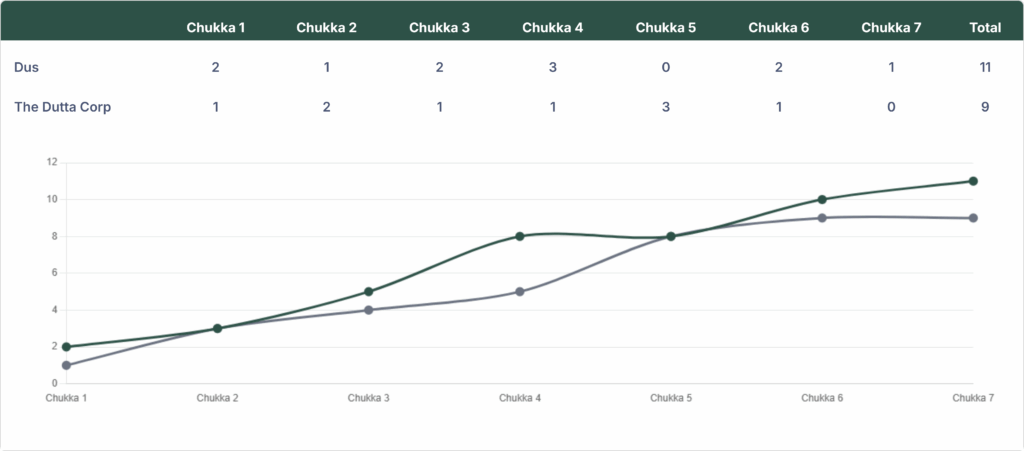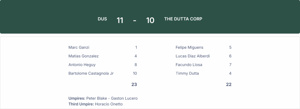DUS won against The Dutta Corp by a score of 11-9 in the USPA Gold Cup at the National Polo Center on Thursday.