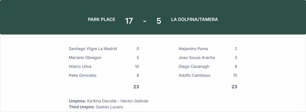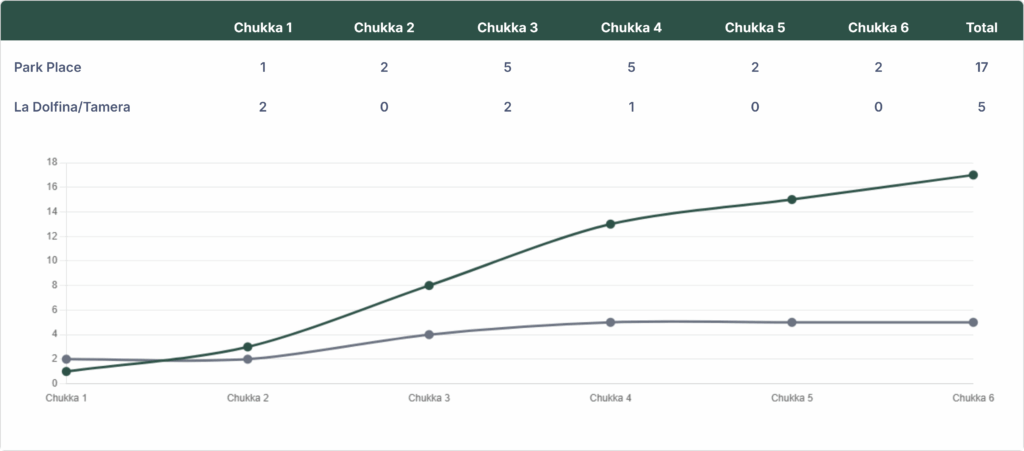 Park Place won against La Dolfina/Tamera by a score of 17-5 in the USPA Gold Cup at the National Polo Center on Thursday.