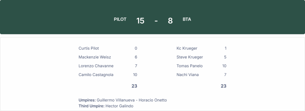 Pilot won against BTA by a score of 15-8 in the USPA Gold Cup at the National Polo Center on Thursday.