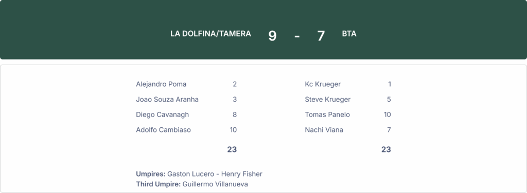 La Dolfina/Tamera won against BTA by a score of 9-7 in the USPA Gold Cup at the National Polo Center on Sunday.