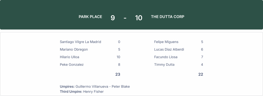 The Dutta Corp won against Park Place by a score of 10-9 in the USPA Gold Cup at the National Polo Center on Sunday.