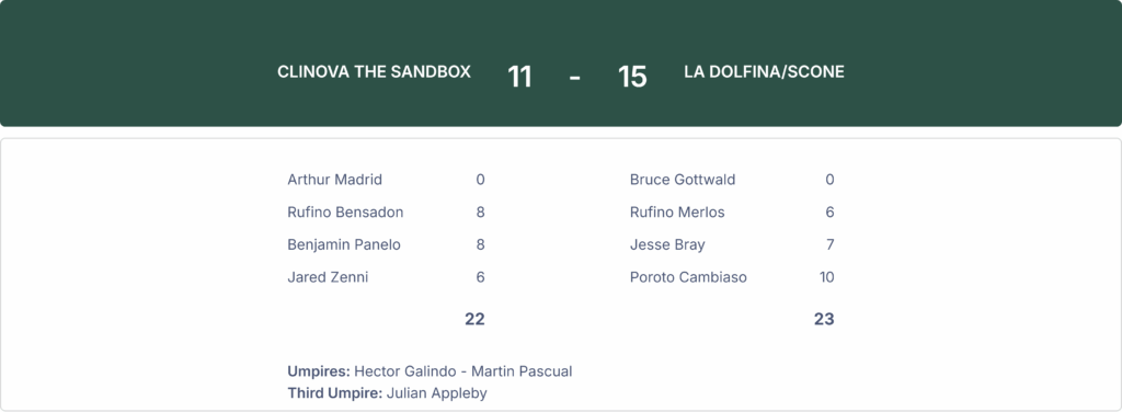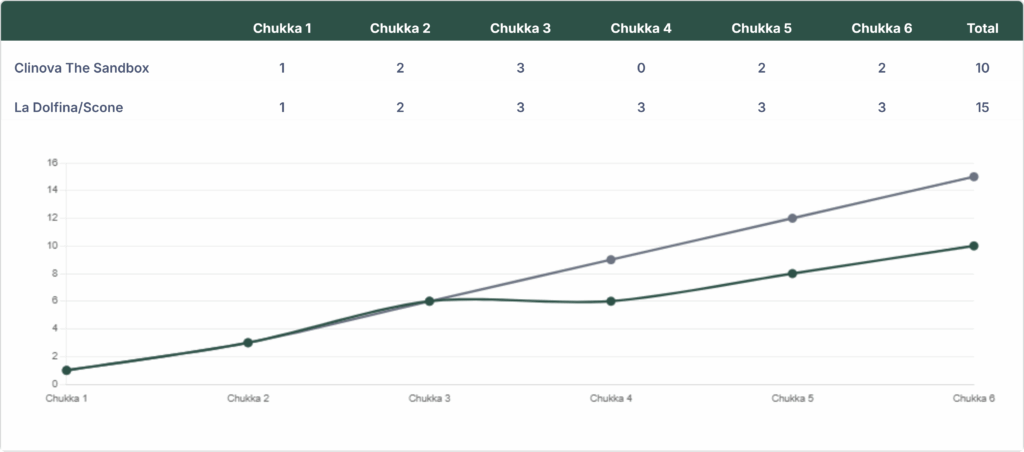 La Dolfina/Scone won against Clinova The Sandbox by a score of 15-11 in the USPA Gold Cup at the National Polo Center on Wednesday.