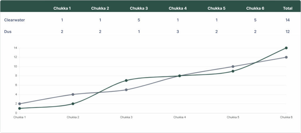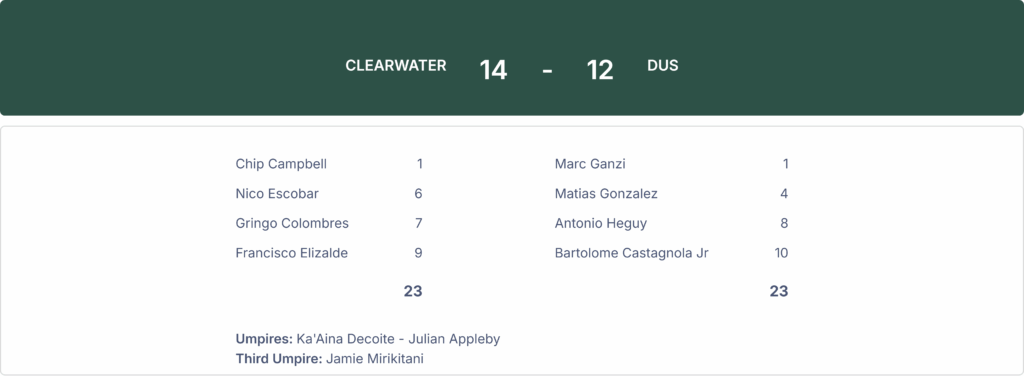 Clearwater won against DUS by a score of 14-12 in the USPA Gold Cup at the National Polo Center on Thursday.
